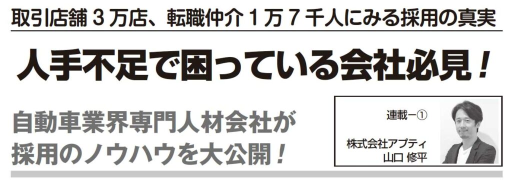 連載の目的は、カーディーラーやモータース、中古車販売店、自家整備の皆さんが「必要な時に、必要な人材を、必要な数だけ自分たちで集められるようになる」ことです。