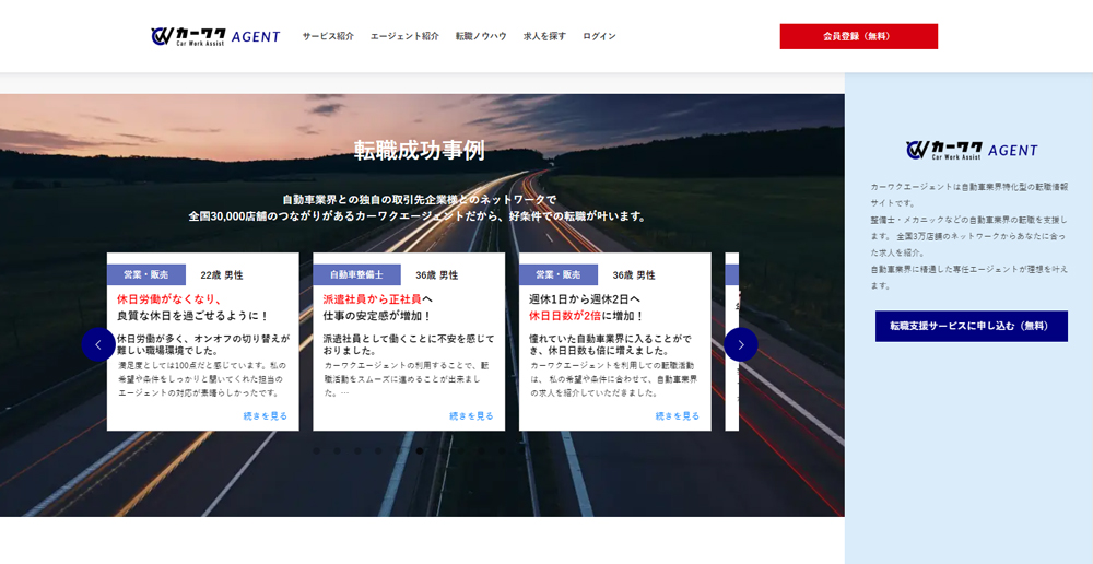 自動車業界専門転職サイト「カーワクエージェント」の運営