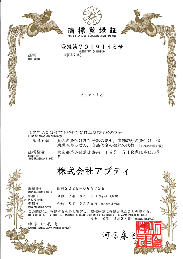 登録商標名:アプティ(商標登録番号:第6537847号)